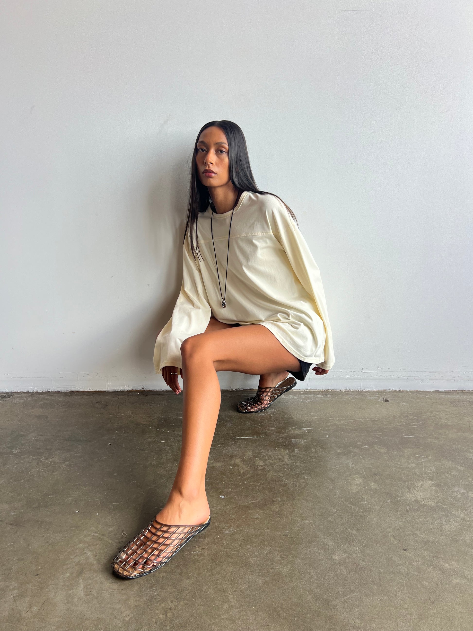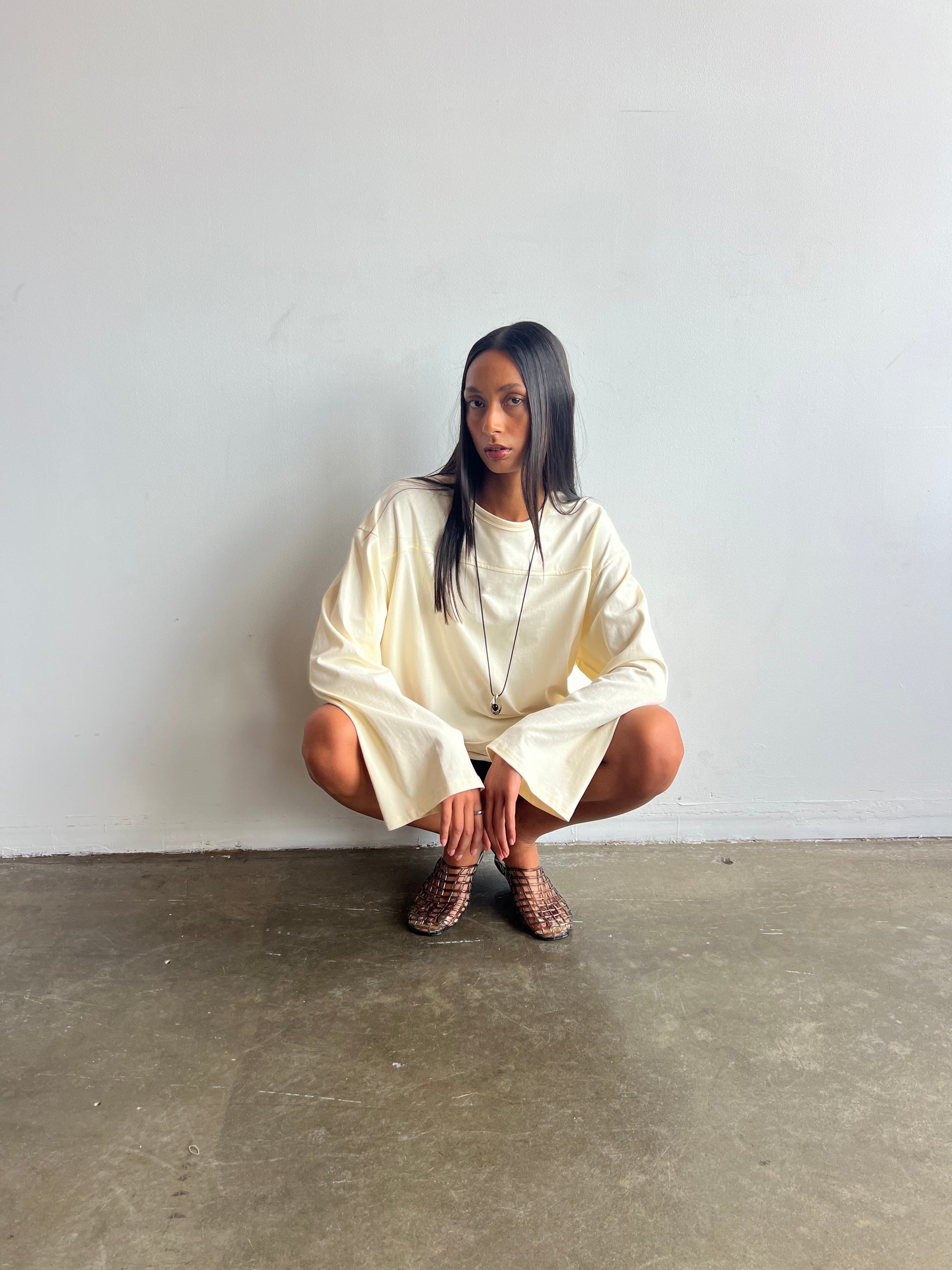 Laid-back style meets everyday ease in our oversized cotton long sleeve tee — your go-to essential for effortless dressing. Crafted from 100% breathable cotton, this piece features a soft, natural drape with a relaxed silhouette designed for comfort and movement.