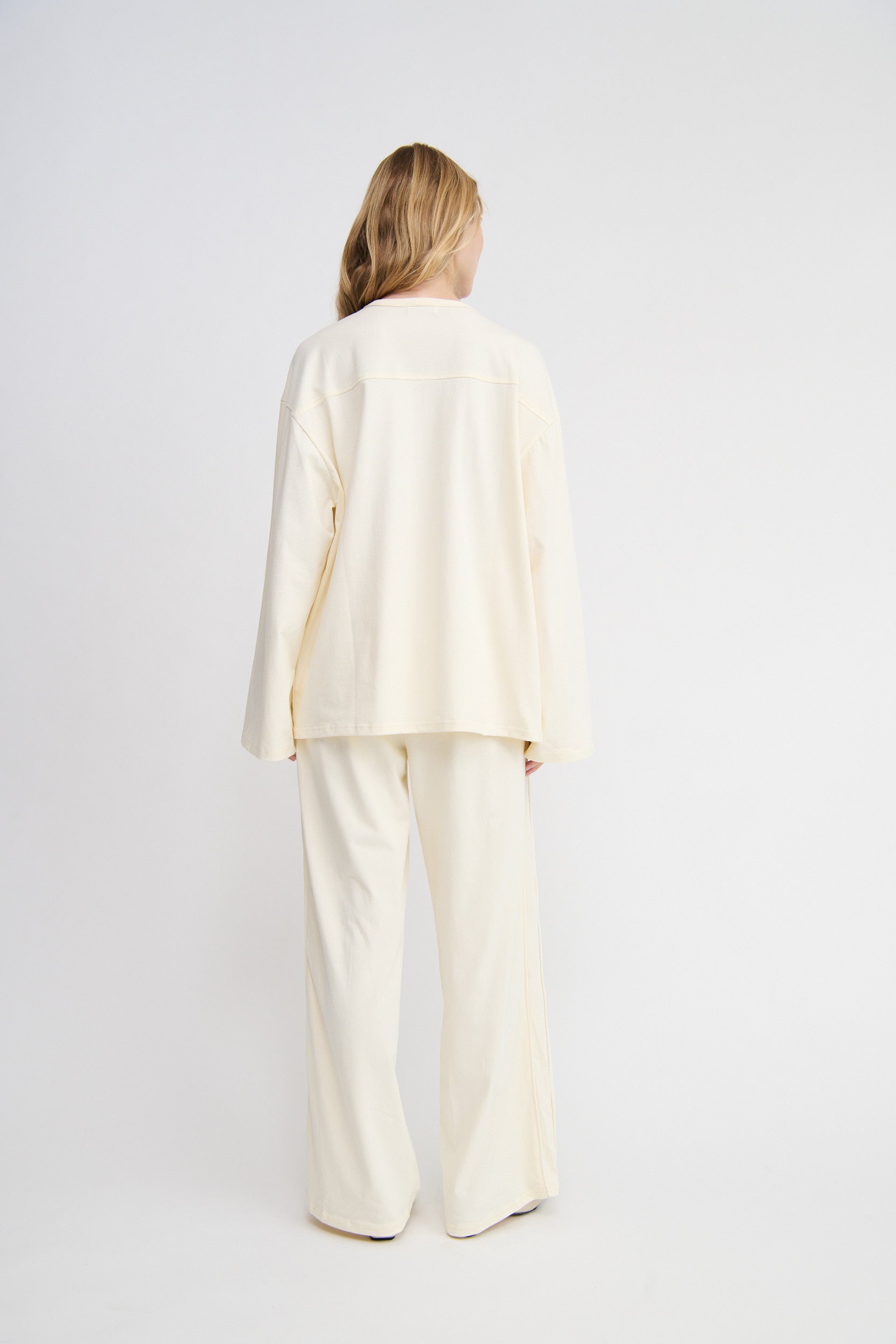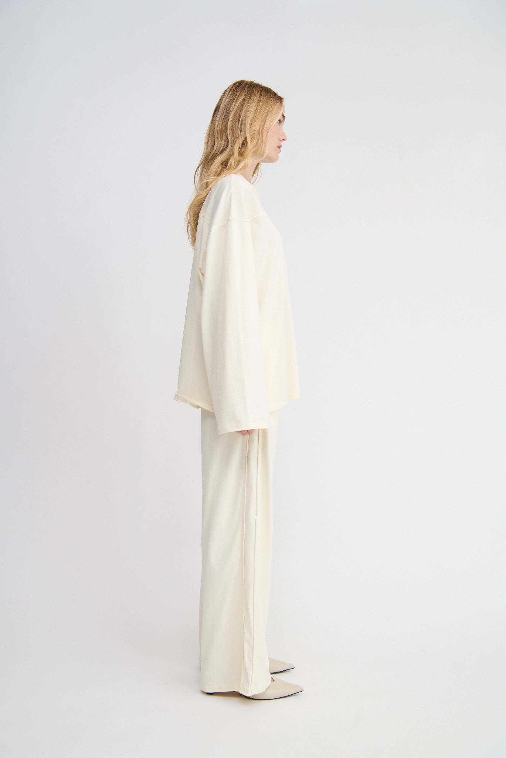 The wide sleeves and dropped shoulder seams add a modern, slouchy edge, while the clean crew neckline keeps it classic. Perfect for layering or wearing solo, this oversized tee pairs effortlessly with the Isola Pant. It's the perfect weekend uniform.